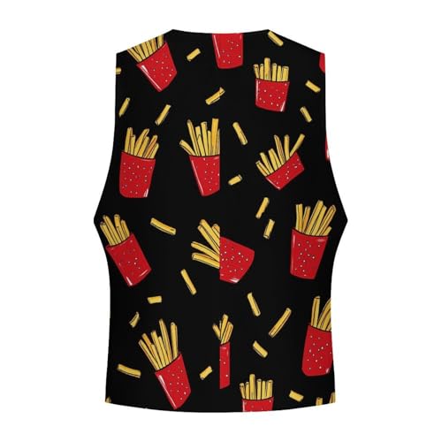 French Fries Men's Suit Vests Business Formal Dress Vest V-Neck Waistcoat for Wedding Casual 1