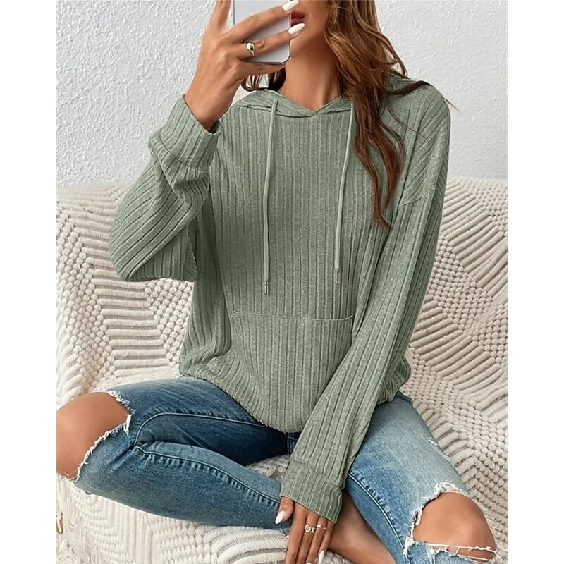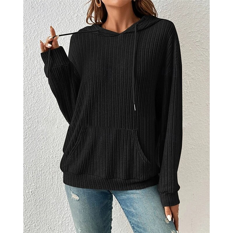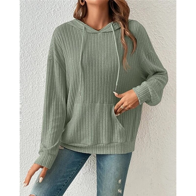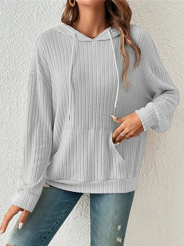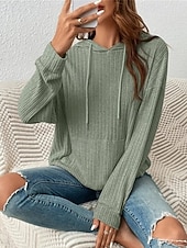 More information about Women's Pullover Hoodie Sweatshirt Plain Streetwear Casual Long Sleeve Hooded Regular Tops Street Holiday Pocket Black Green Khaki Gray Fall Winter