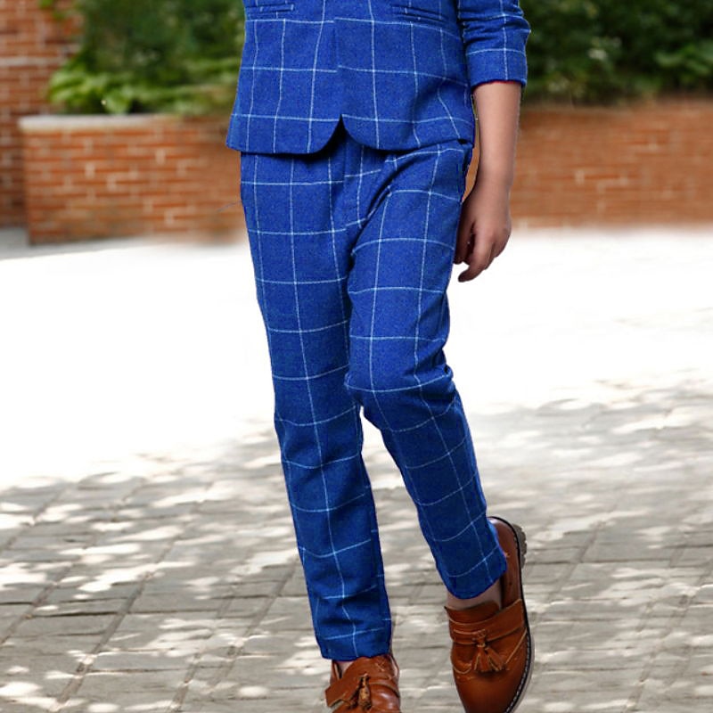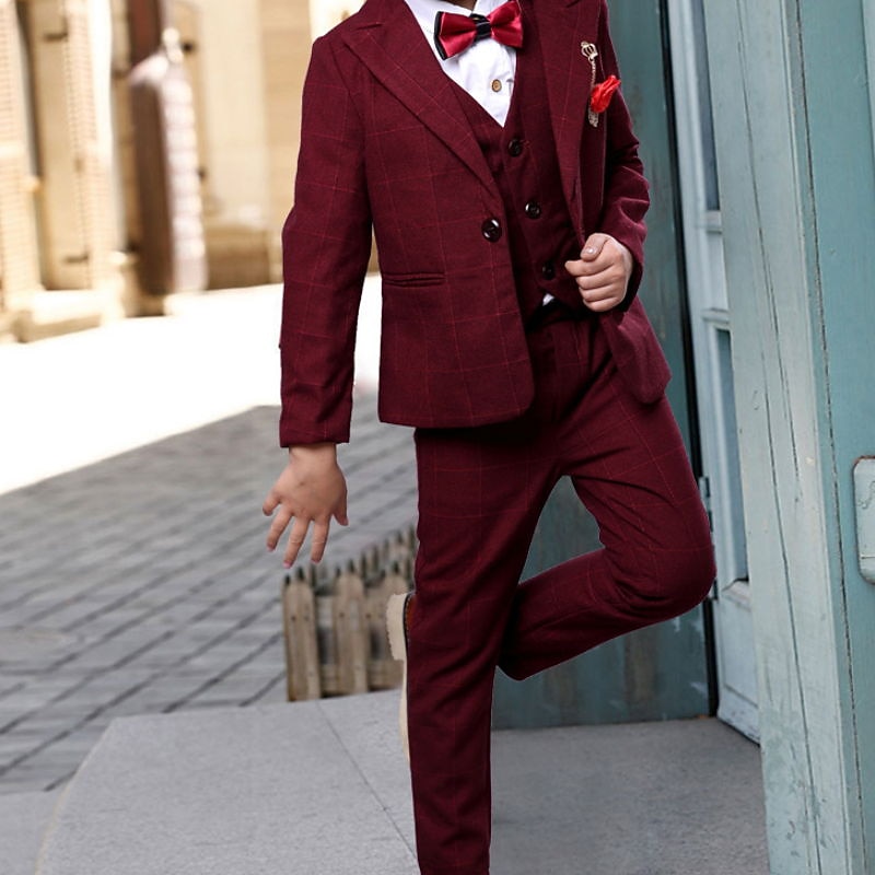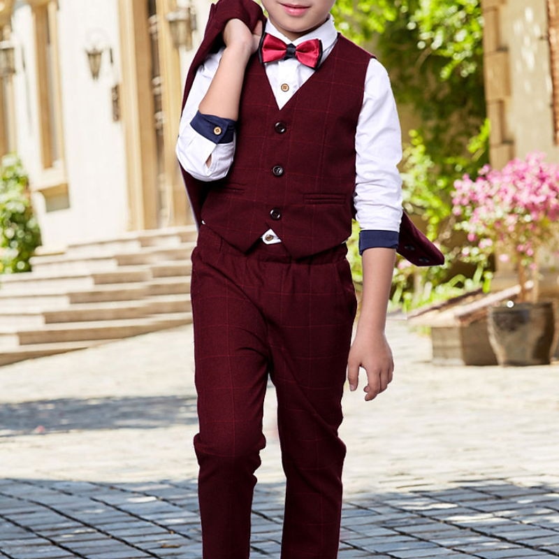 More information about 3 Pieces Ring Bearer Suit Boys Kids Suit Formal Suit Suit & Blazer Tank & Pants Formal Anniversary Cool Gentle Plaid Wine Blue Gray Cotton