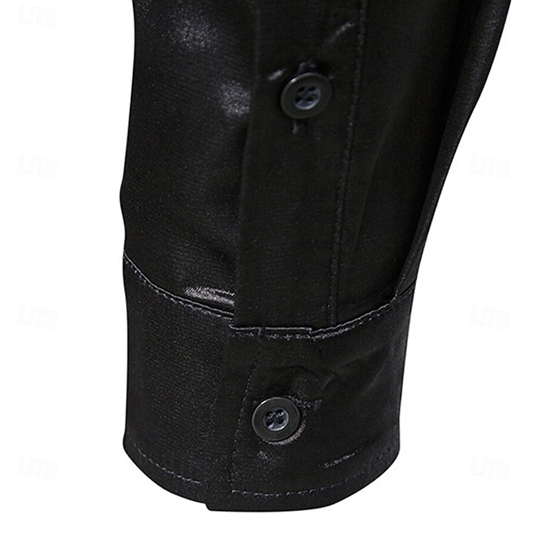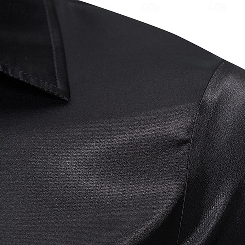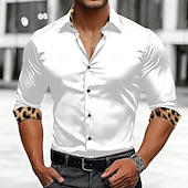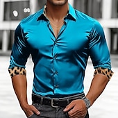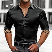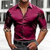 More information about Men's Shirt Satin Shirt Casual Shirt Button Up Shirt Leopard Wedding Vacation Black White Wine Green Long Sleeve Lapel Spring & Fall Clothing Apparel Patchwork