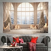 More information about Christmas Decorations Hanging Tapestry Wall Art Xmas White Window View Large Tapestry Mural Decor Photograph Backdrop Blanket Curtain Home Bedroom Living Room