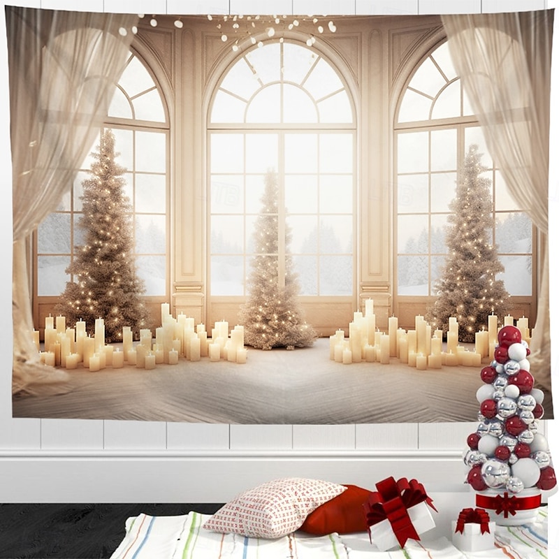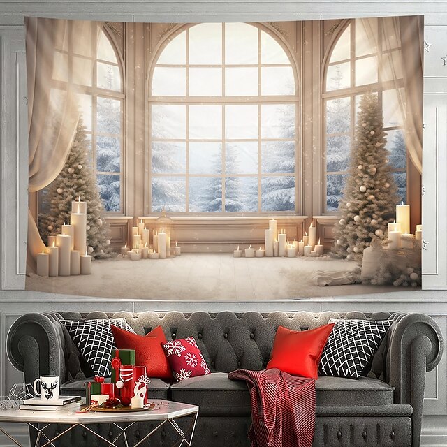 Christmas Decorations Hanging Tapestry Wall Art Xmas White Window View Large Tapestry Mural Decor Photograph Backdrop Blanket Curtain Home Bedroom Living Room 8