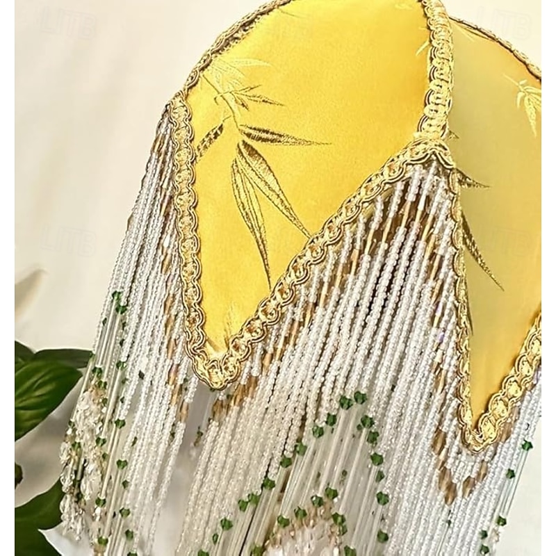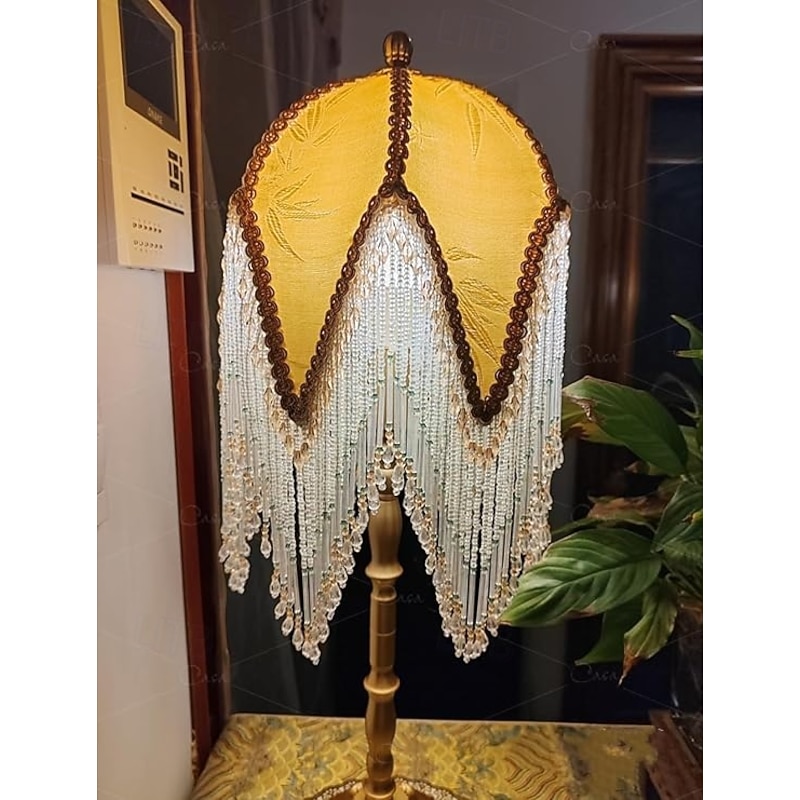 More information about LED Table Lamp 3-Color Light Source Tassel Retro Fabric Bedside Lamp Premium Classic Victorian Style Nightstand Lamp with Beaded Fringe Trim for Bedroom Study 110-240V