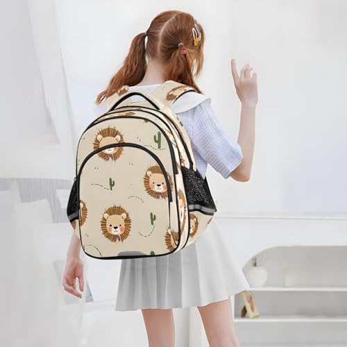 Lion Cactus Pattern Backpack For Girls Kindergarten Elementary Bookbag Lightweight Childrens School Bag,Small 5