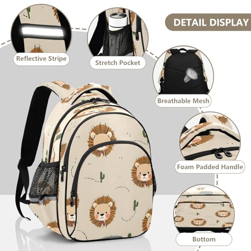 Lion Cactus Pattern Backpack For Girls Kindergarten Elementary Bookbag Lightweight Childrens School Bag,Small 3