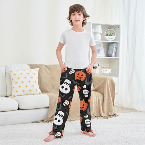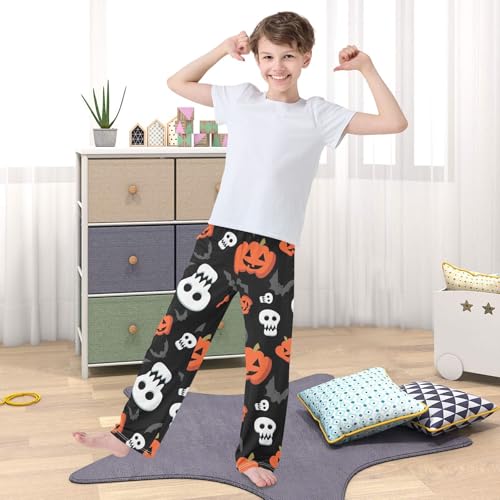 HOT ! Funny Skull Bat Boys Pants Boys Athletic Pants Long Pant for Boy with Pockets Wide-Leg Size 6-14Y