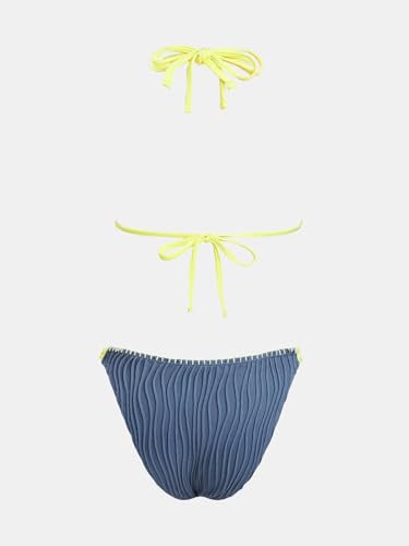 CUPSHE Women's Bikini Sets Two Piece Swimsuit Plunge Neck Cheeky Bottom Triangle Top Halter Double Strap Textured 3