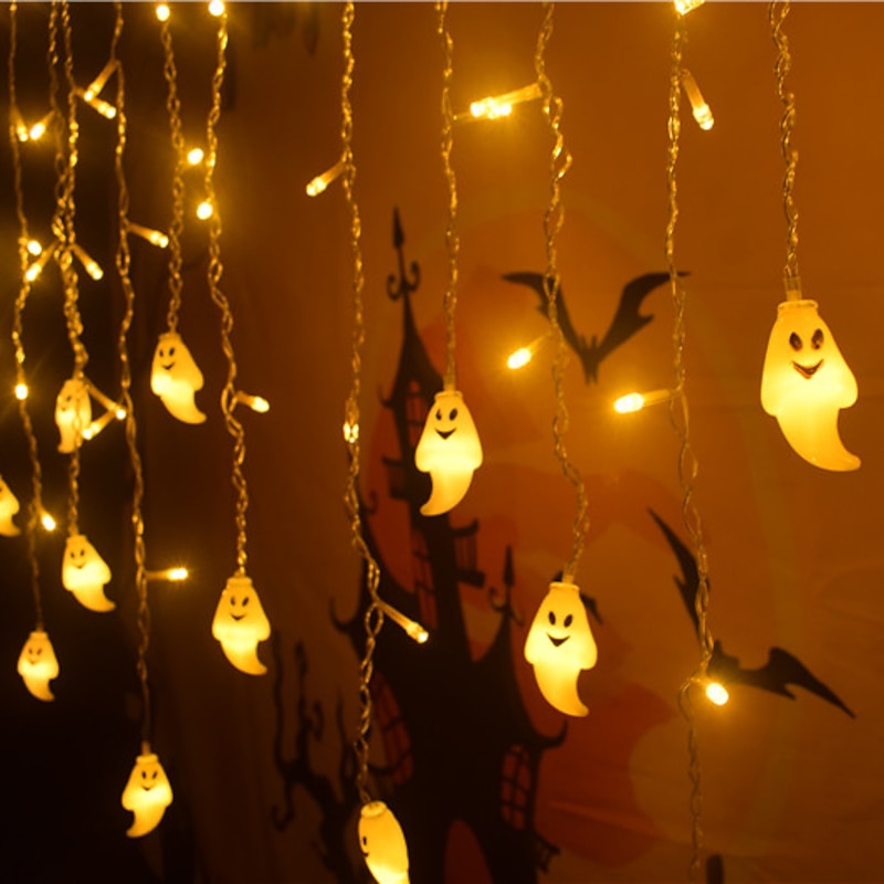 Halloween Decorations 3.5M 96Led LED Icicle Curtain String Lights, 3D Pumpkin Ghost Lantern for Home Party Holiday Lights EU US AU UK Plug 20