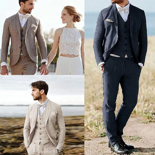 • 【Feature】Vintage linen fabric, comfortable and breathable, classic fit. Especially suitable for beach weddings, it is the best formal & casual suit for brides, groomsmen, or guests.