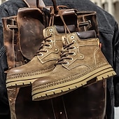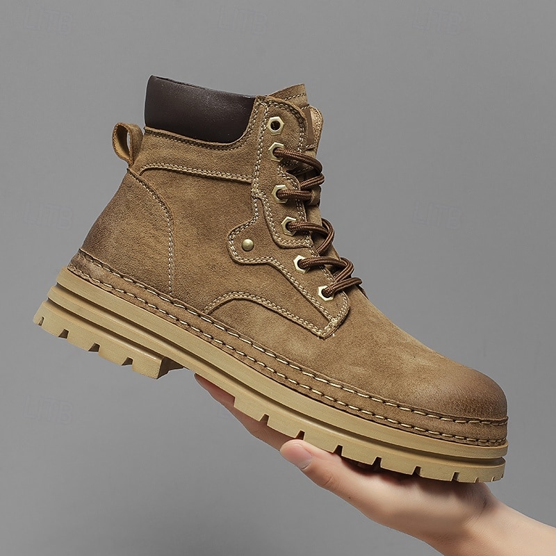 More information about Men's Tan Suede Work Boots – Casual Outdoor Lace-Up Ankle Boots for Hiking, Farm Work & Daily Wear