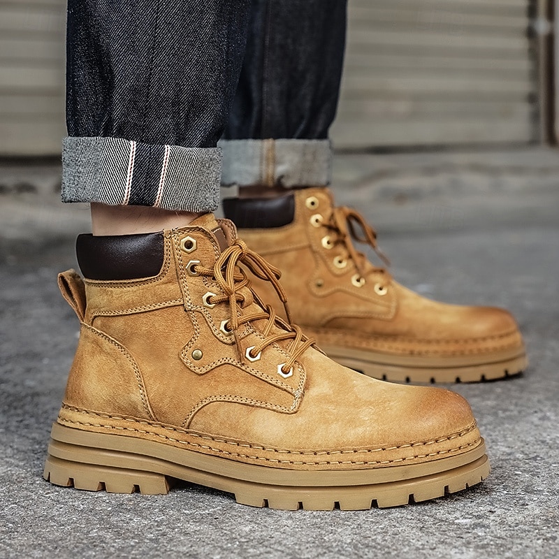 Men's Tan Suede Work Boots – Casual Outdoor Lace-Up Ankle Boots for Hiking, Farm Work & Daily Wear 29