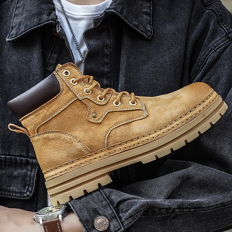 Men's Tan Suede Work Boots – Casual Outdoor Lace-Up Ankle Boots for Hiking, Farm Work & Daily Wear 24