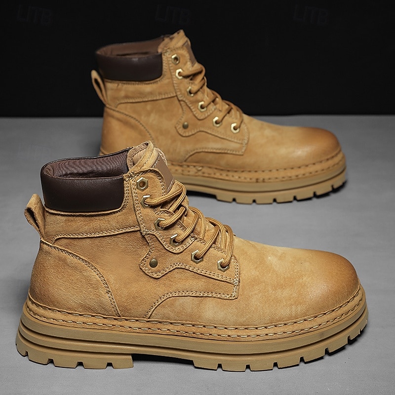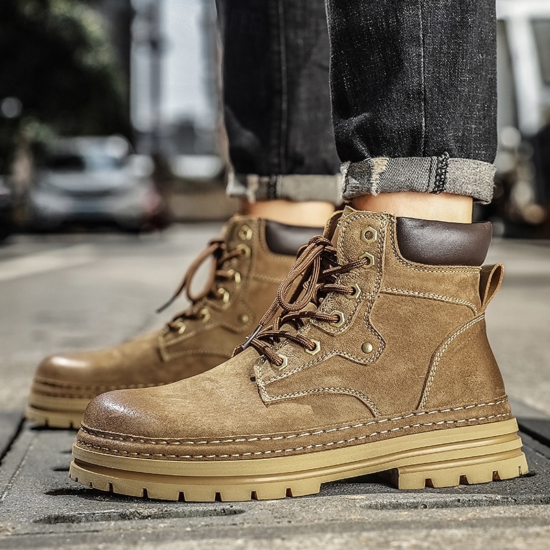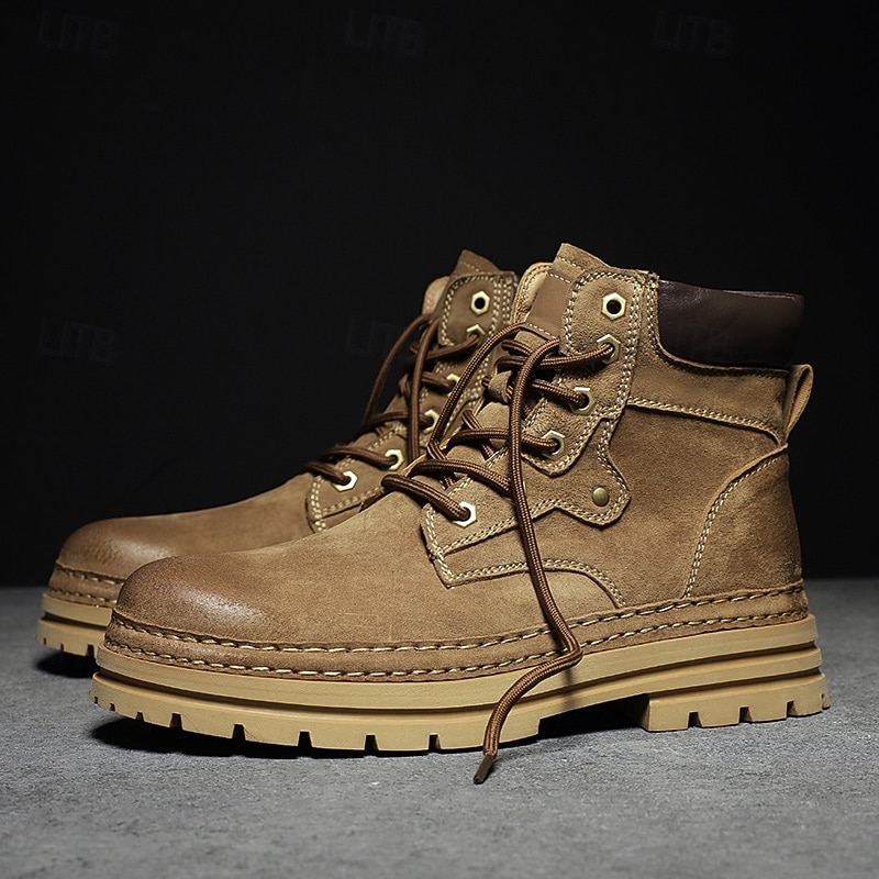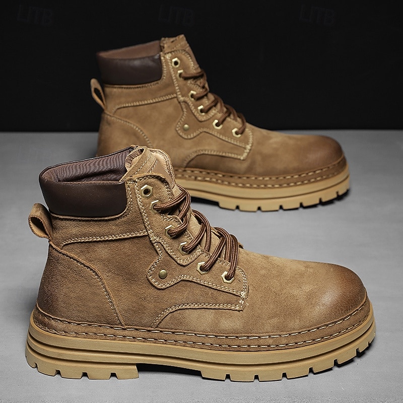 Men's Tan Suede Work Boots – Casual Outdoor Lace-Up Ankle Boots for Hiking, Farm Work & Daily Wear 1