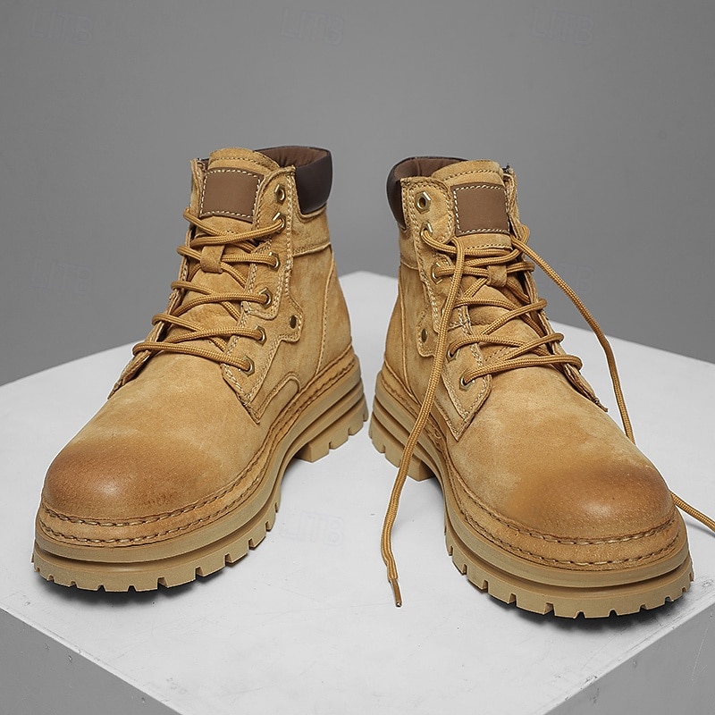 Men's Tan Suede Work Boots – Casual Outdoor Lace-Up Ankle Boots for Hiking, Farm Work & Daily Wear 35