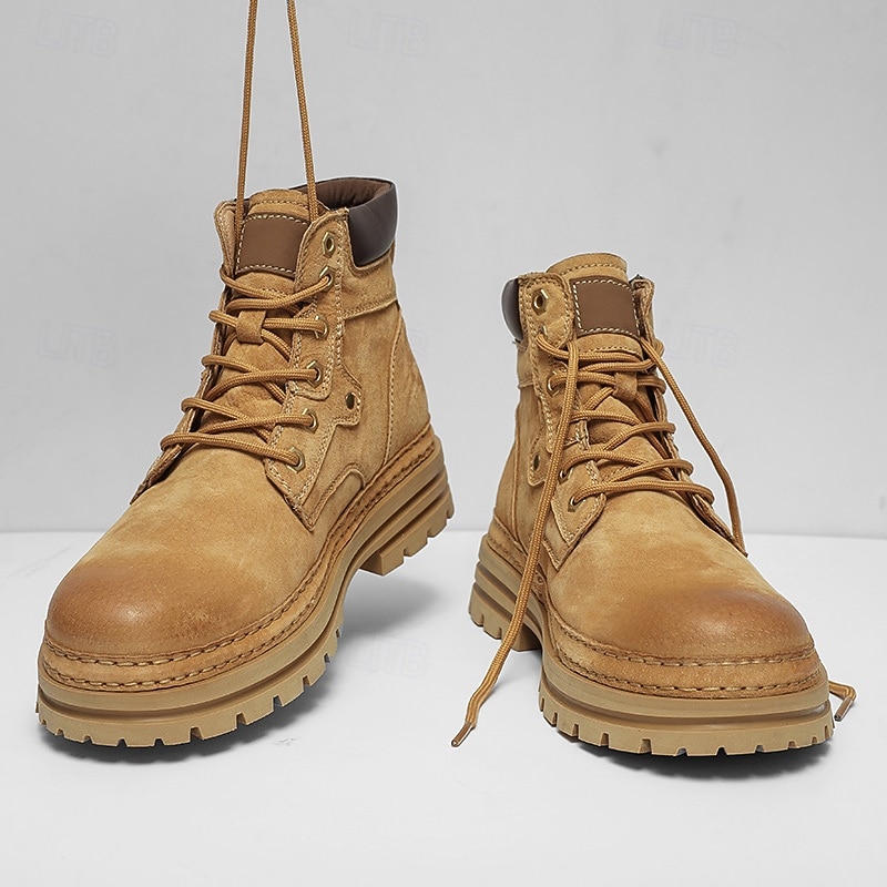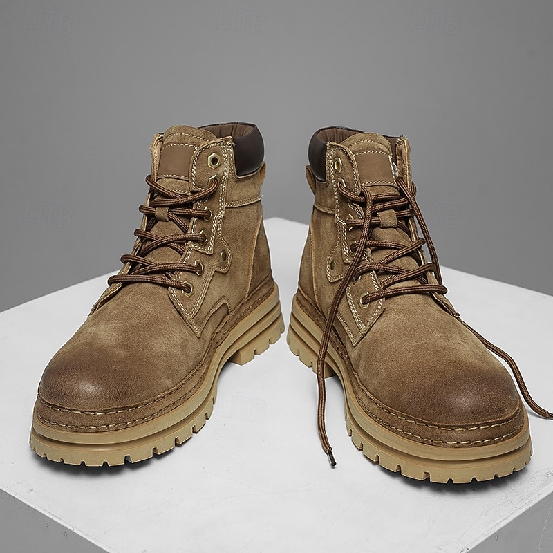 Men's Tan Suede Work Boots – Casual Outdoor Lace-Up Ankle Boots for Hiking, Farm Work & Daily Wear 36