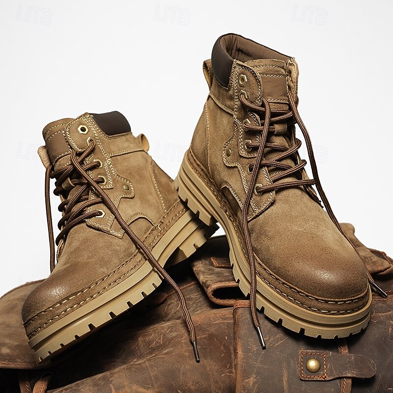 Men's Tan Suede Work Boots – Casual Outdoor Lace-Up Ankle Boots for Hiking, Farm Work & Daily Wear 17