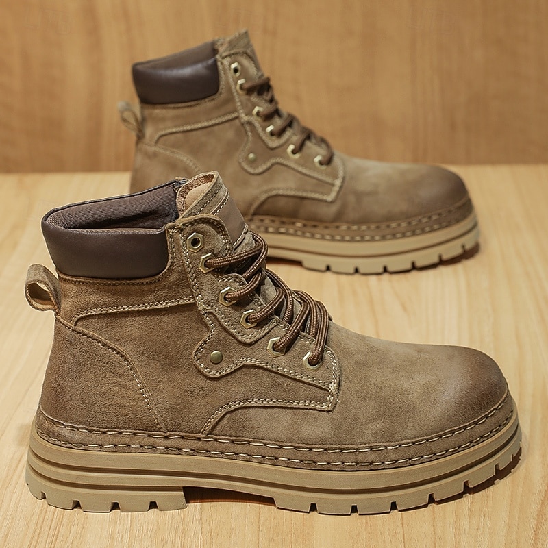 Men's Tan Suede Work Boots – Casual Outdoor Lace-Up Ankle Boots for Hiking, Farm Work & Daily Wear 25