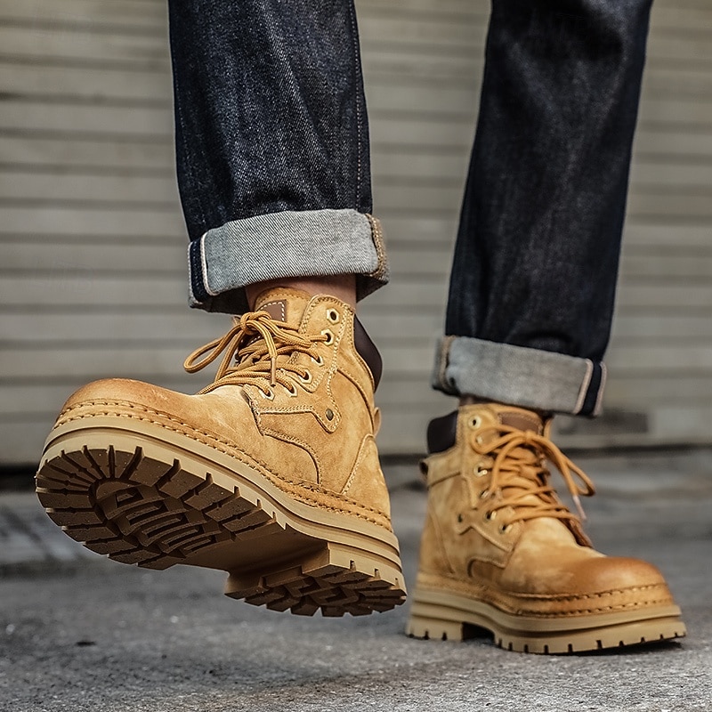 Men's Tan Suede Work Boots – Casual Outdoor Lace-Up Ankle Boots for Hiking, Farm Work & Daily Wear 19