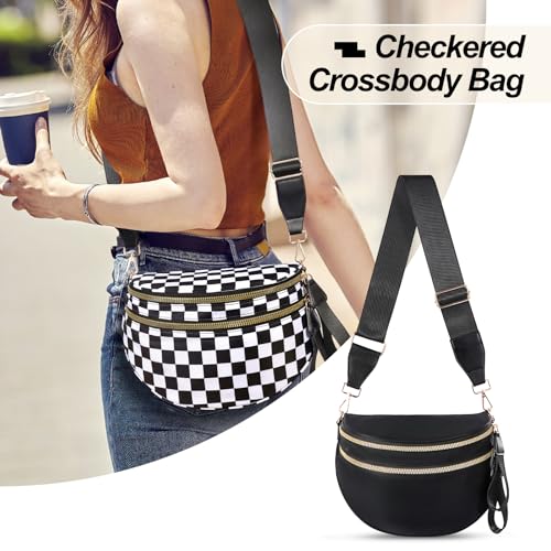 Checkered Crossbody Bag,Nylon Bum Bags for Women Crossbody,Spacious Sling Bag Purse Fanny Packs with Shoulder Strap 1