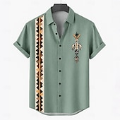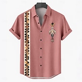More information about Men's Linen Shirt Summer Shirt Beach Wear Button Up Shirt Geometric Vacation Casual Red Green Khaki Short Sleeve Turndown Summer Spring Clothing Apparel