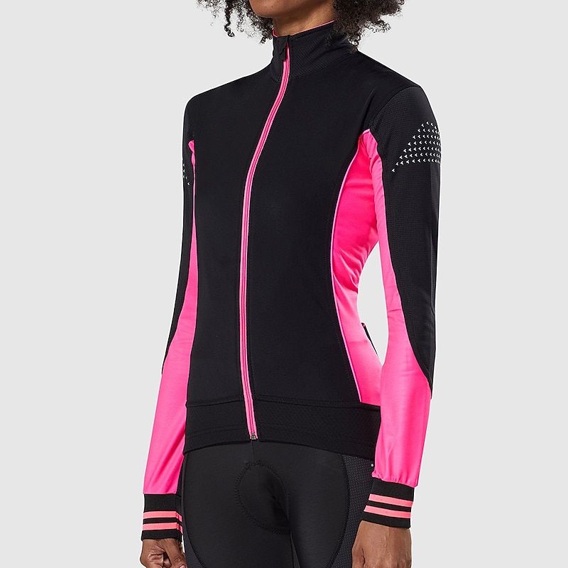 More information about Women's Cycling Jersey Color Block Long Sleeve Bike Jersey Top with 3 Rear Pockets Mountain Bike MTB Road Bike Cycling Quick Dry Reflective Strips Back Pocket Moisture Wicking Sports Yellow Pink Red