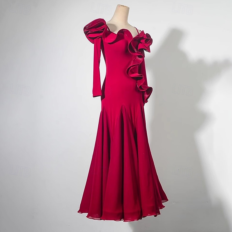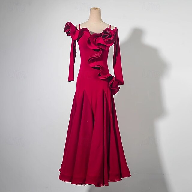 $216.99 - Ballroom Dance Dress Pure Color Splicing Women's Performance Party Long Sleeve Chiffon Crystal Cotton 2025. Shop for cheap Competition Wear online? Buy at lightinthebox.com on sale today!