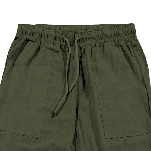 JEShifangjiusu Men's Baggy 3/4 Linen Capri Pants Summer Drawstring Short Below Knee Yoga Pants with Pockets 6