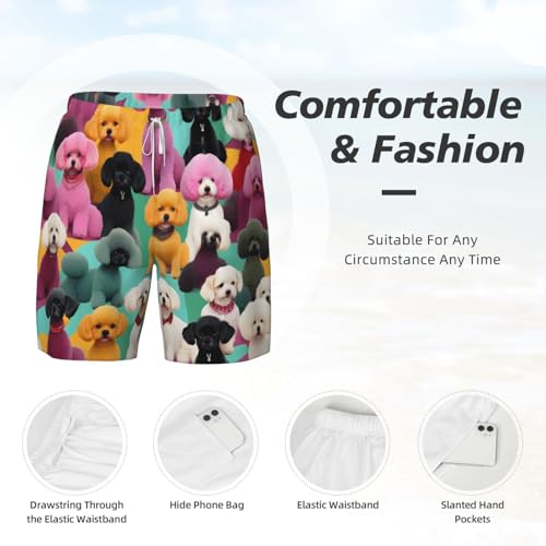 • Compression Liner: Poodles Dogs Print Mens Swimming Shorts Feature Built-In Brief Liners That Provide Enhanced Comfort And Support. This Design Helps Reduce Chafing And Discomfort, Especially During Prolonged Swim Sessions Or Active Water Sports.Mens Swimsuits Inseam Feature Elastic Waistbands With Drawstrings For Adjustable Comfort And Secure Fit.