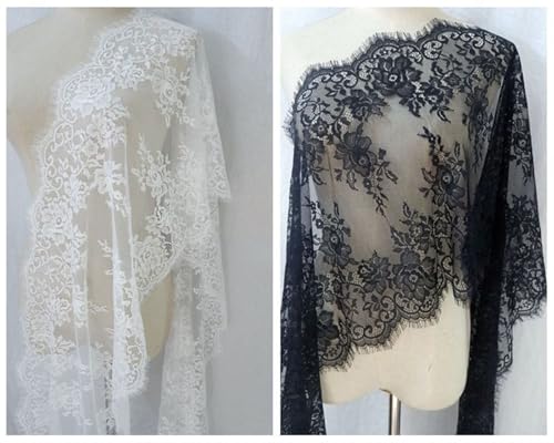 Mesh Soft Bilateral Eyelash Lace Garment Fabrics Sleeve Skirt Lace Extension Splicing Home Accessories 1 Piece(C Black) 5