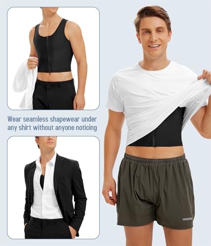 • Adjustiable and comfortable: our compression tank top men is designed with a wide shoulder straps make you comfortable to wear all day long. In addition, the chest binder is equipped with a zipper and a three-row hook-and-eye design that allows you to adjust the compression to your comfort level. This compression undershirt hugs your body and provides a comfortable and cozy fit that you can customize to your needs.