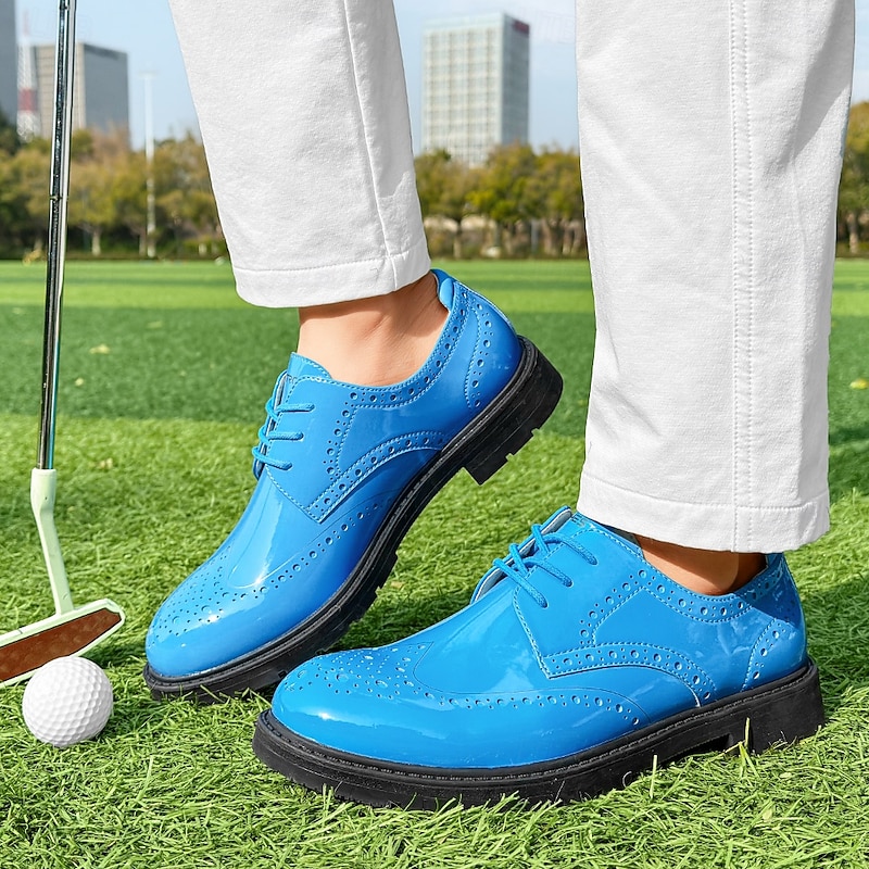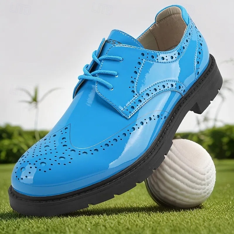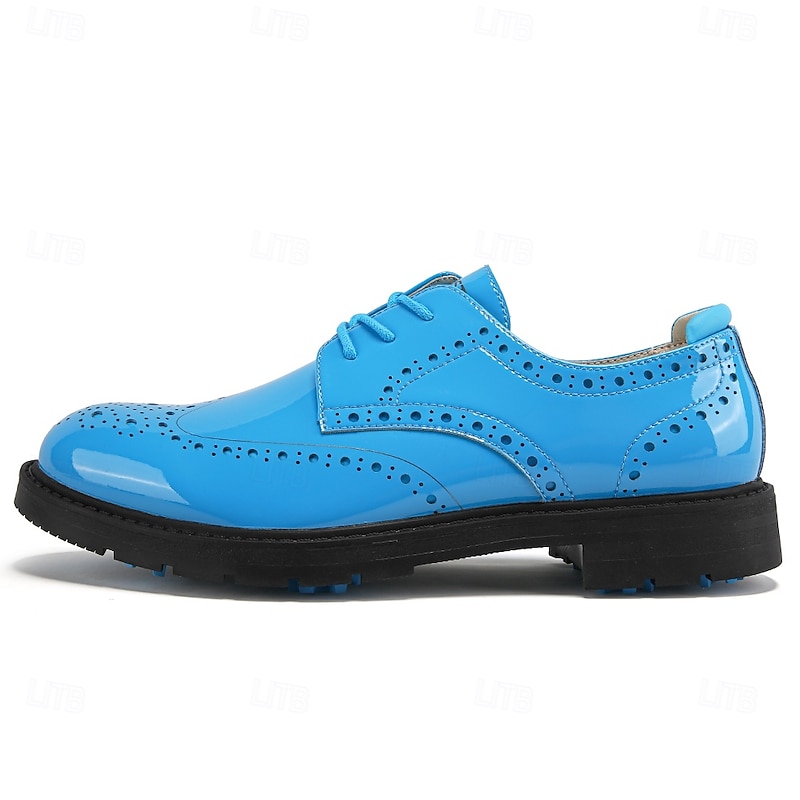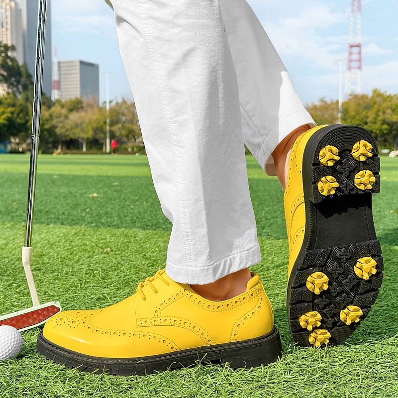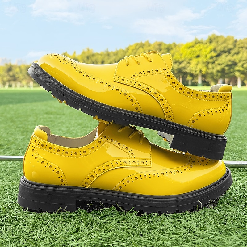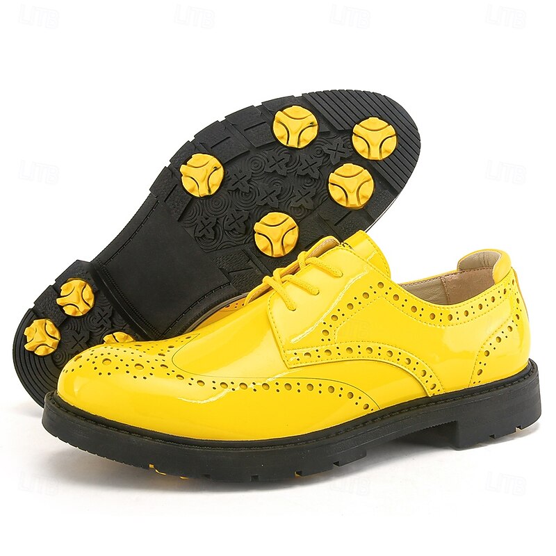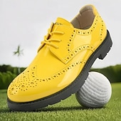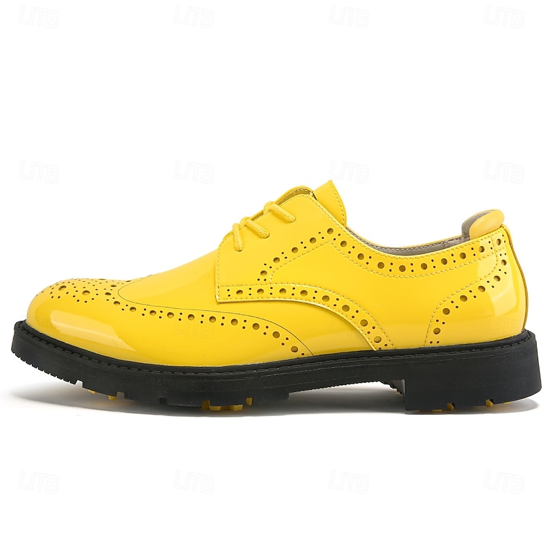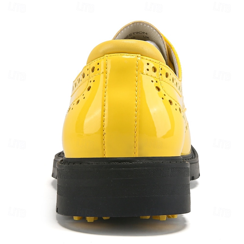 More information about Men's Vibrant Yellow Brogue Golf Shoes, Lace-Up, Water-Resistant Leather, Stylish Choice for Golf and Casual Wear