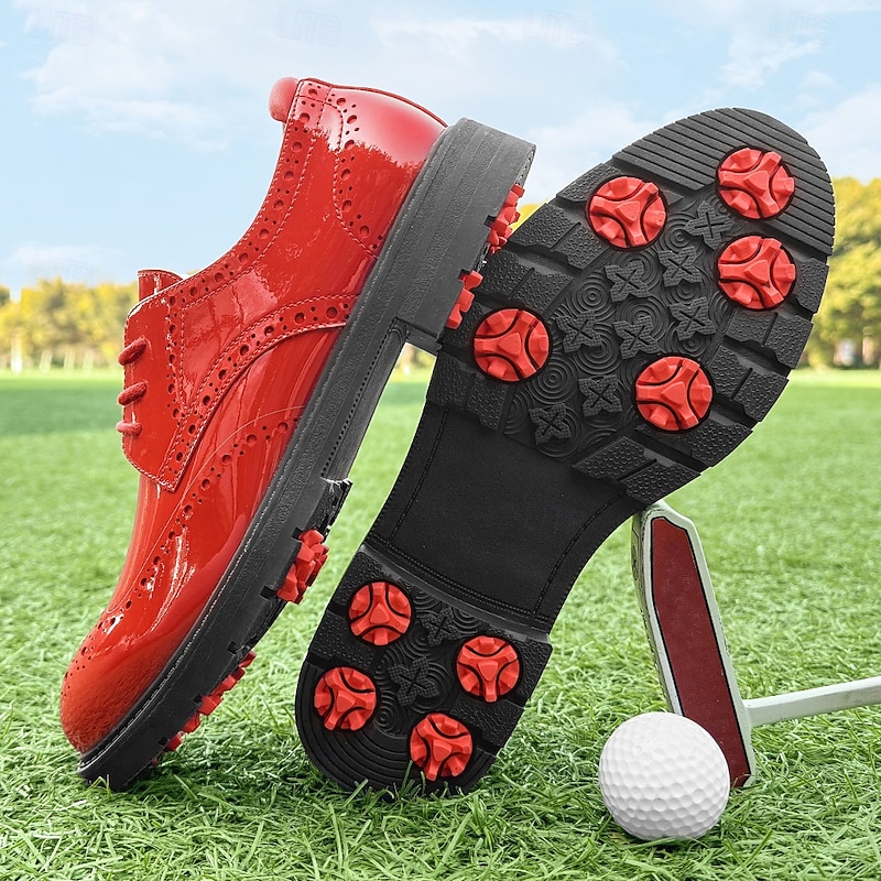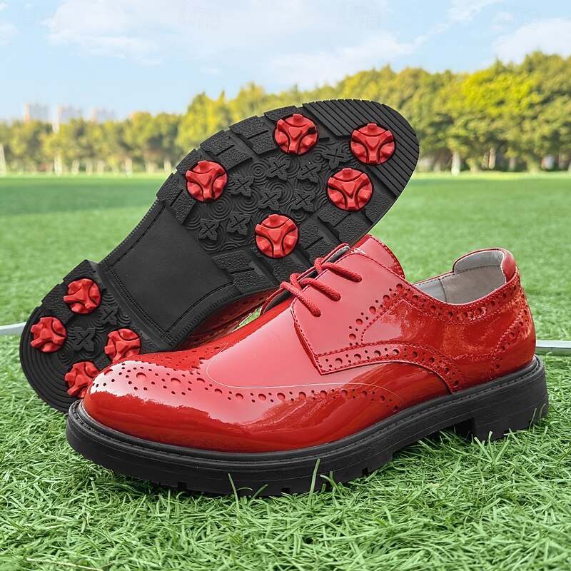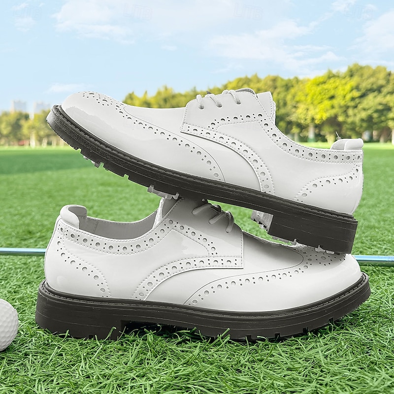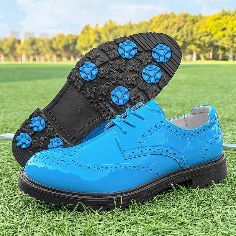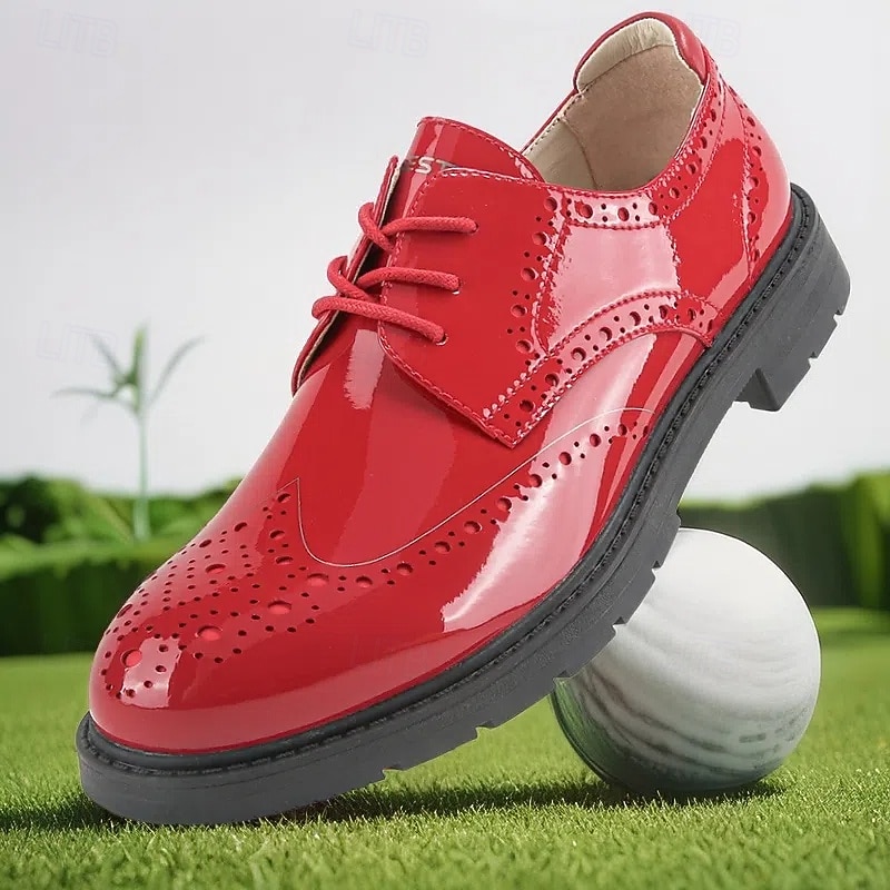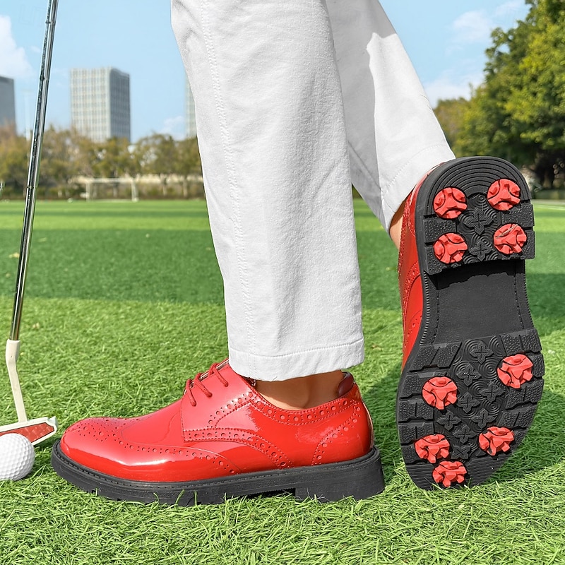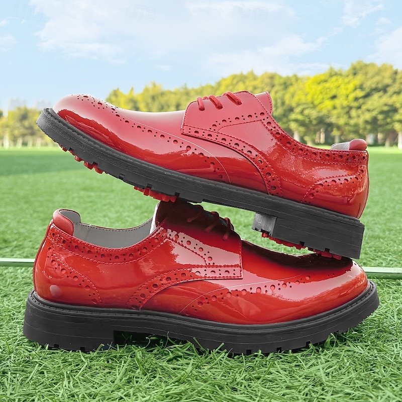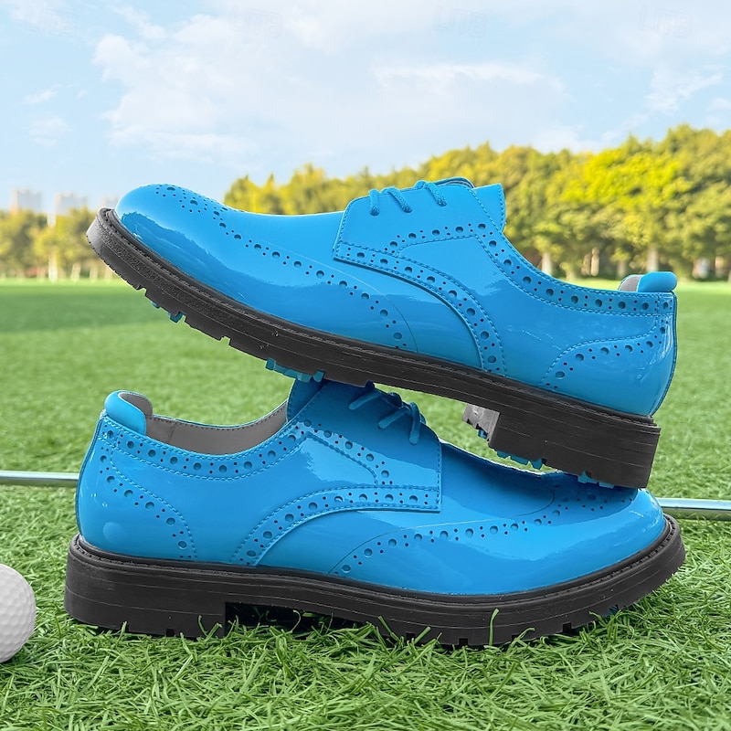 More information about Men's Vibrant Yellow Brogue Golf Shoes, Lace-Up, Water-Resistant Leather, Stylish Choice for Golf and Casual Wear