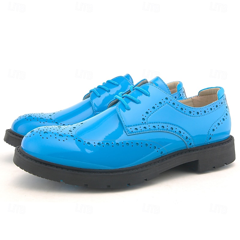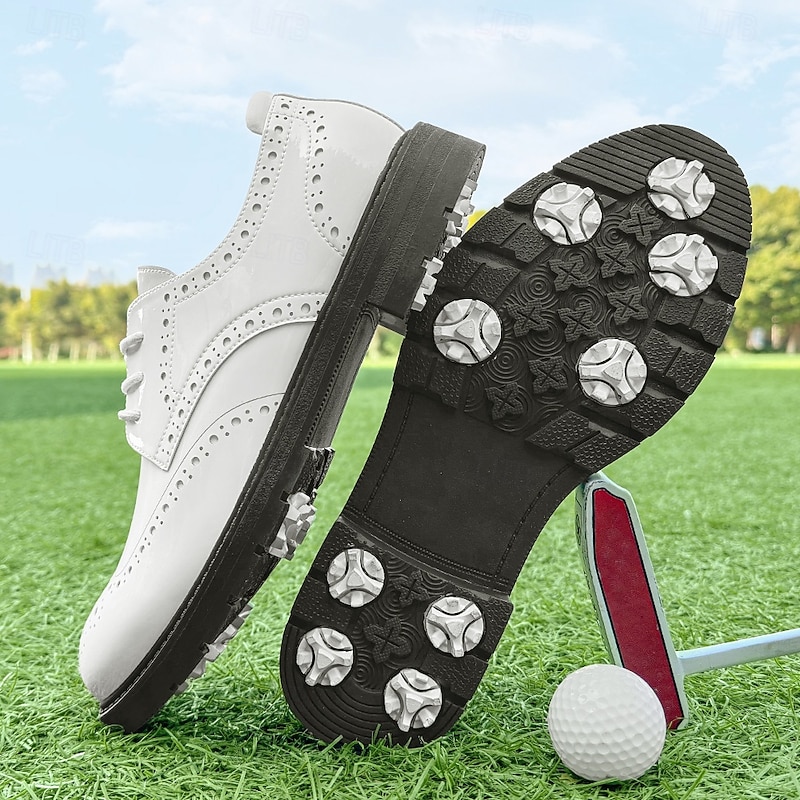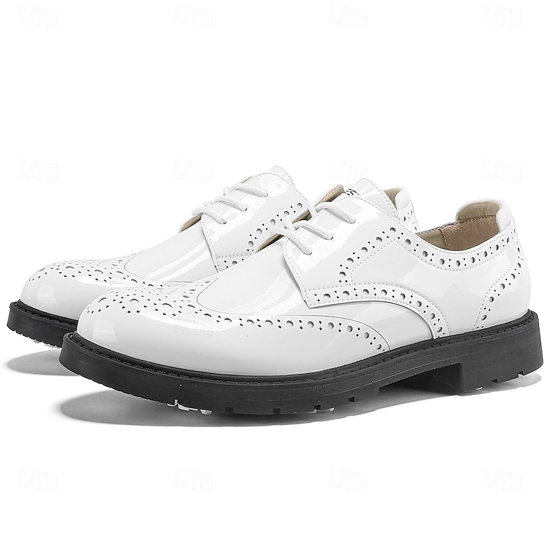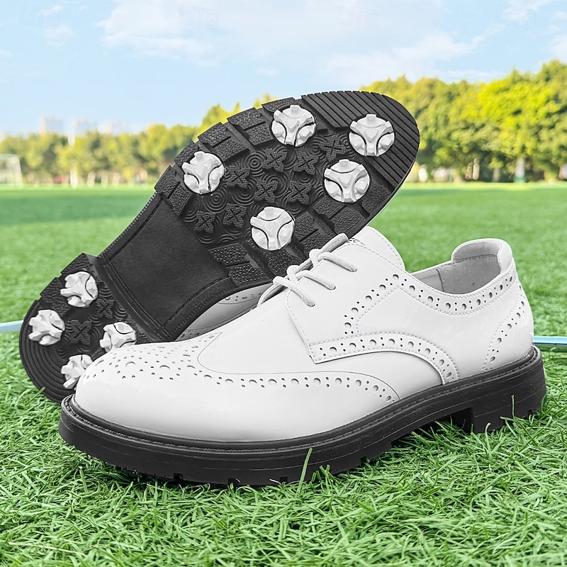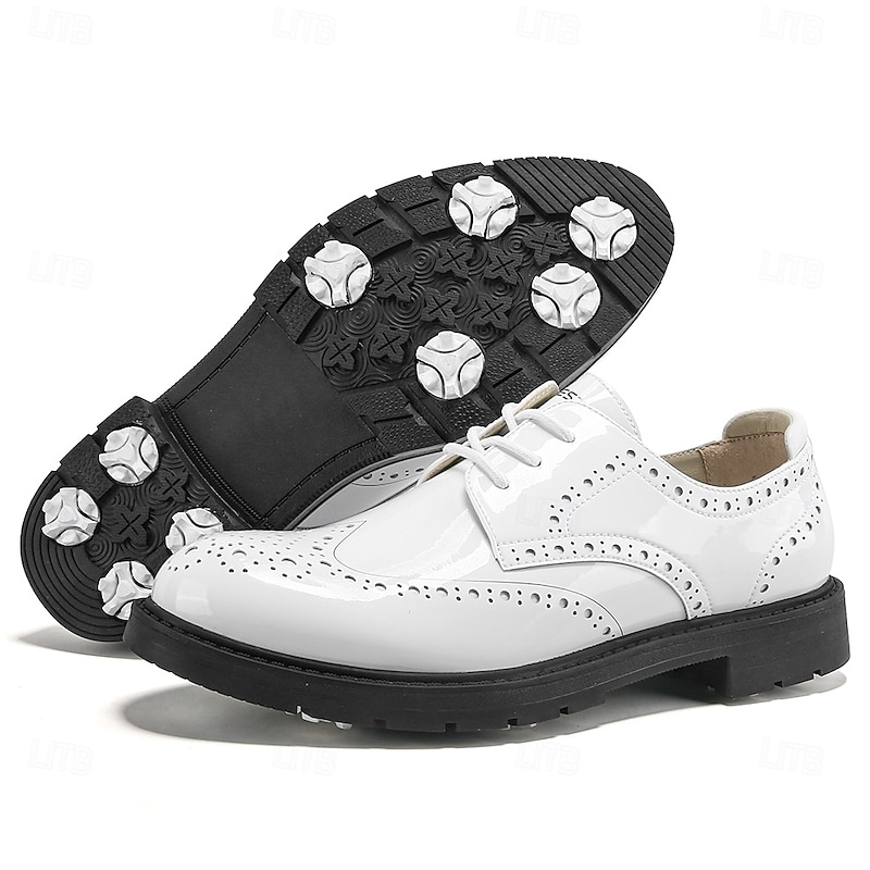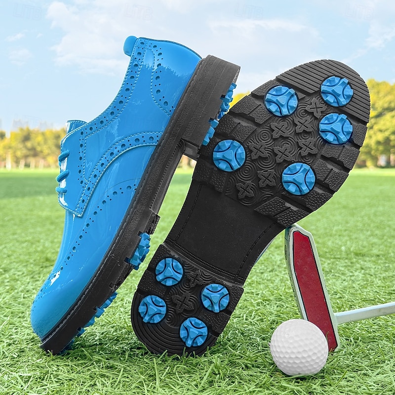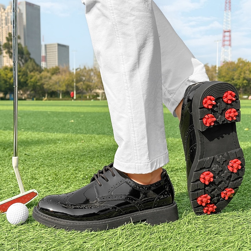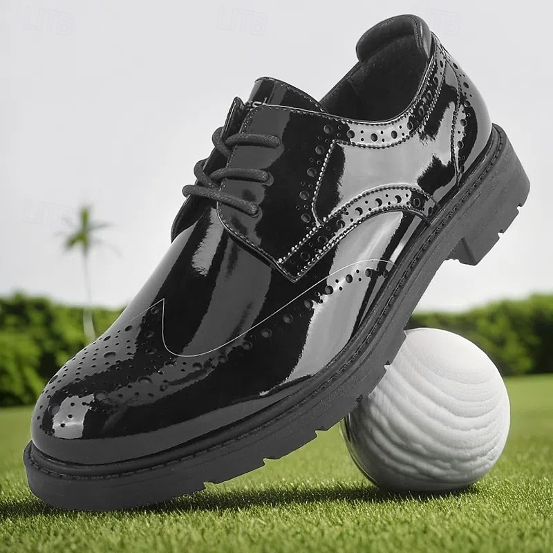 More information about Men's Vibrant Yellow Brogue Golf Shoes, Lace-Up, Water-Resistant Leather, Stylish Choice for Golf and Casual Wear