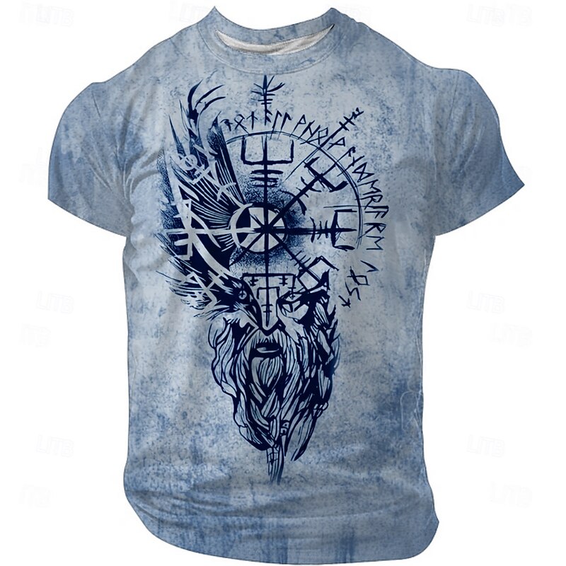 More information about Men's Viking T Shirt Short Sleeve T shirt 3D Print Crew Neck Shirt Retro Vintage Gothic Street Casual Daily Black Red Blue Summer Spring All Seasons Clothing Apparel S M L XL XXL XXXL