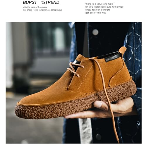 Myallfeet Men's Frosted Leather Suede Suede Mid Top Board Shoes Retro Casual Fashion Design Walking Ankle Boots Classic Non Slip Lace Up Suede Oxford Sneakers 7