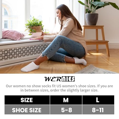 • TWO SIZES: Our no show socks are suitable for most women, strong elasticity, neither tight nor loose,[ US 5-8 ] [ US 8-11 ]. WERNIES provides top quality and excellent customer service. If you have any problem, please contact us by email, we will give you solutions within 24 hours