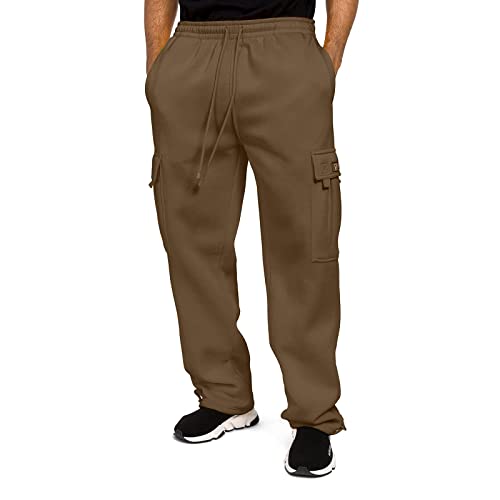HOT ! Men's Fleece Cargo Sweatpants Baggy Open Bottom Casual Pants Drawstring Elastic Waist Athletic Workout Joggers Pants