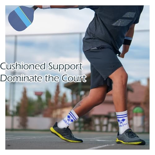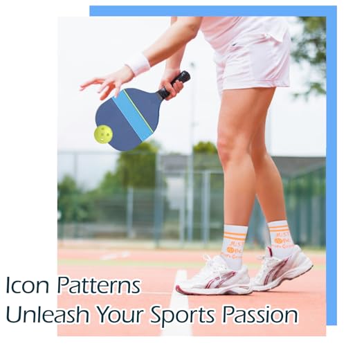 Pickleball Crew Socks Bulk Unisex, Performance Cushioned Sports Cotton Mid Calf Sock for Pickleballs Lover