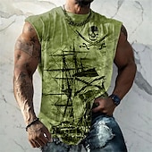 Men's Graphic Ship Nautical Pirate Vest Top Sleeveless T Shirt for Men Sleeveless Cap Sleeve T shirt 3D Print Crew Neck Shirt Fashion Designer Muscle Daily Sports Gym Blue Brown Green Spring & Summer 2