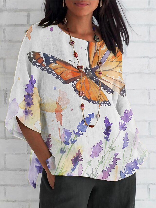 This Women's Shirt Butterfly Daily Casual 3/4 Length Sleeve Crew Neck Regular Tops Daily Holiday Print Yellow Blue Purple Fuchsia Orange Summer Spring Fall combines elegant design with practical functionality. Every detail has been carefully considered to ensure you get the best possible experience. The exceptional construction means this product will serve you well for years to come.