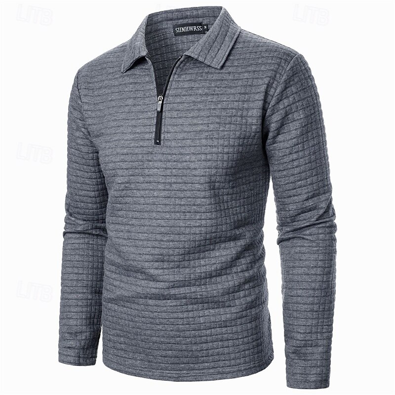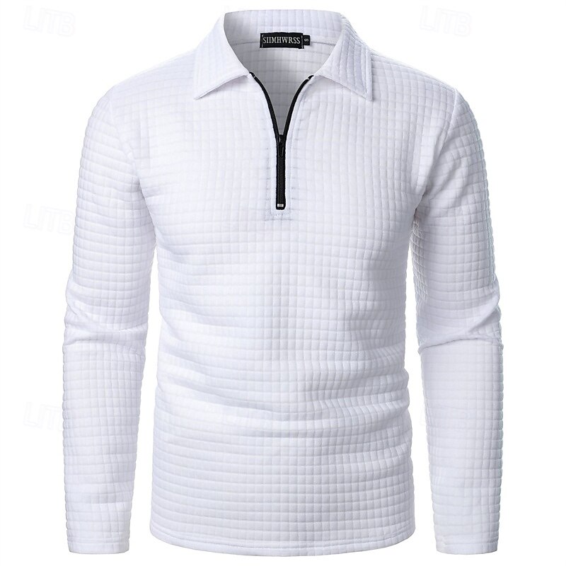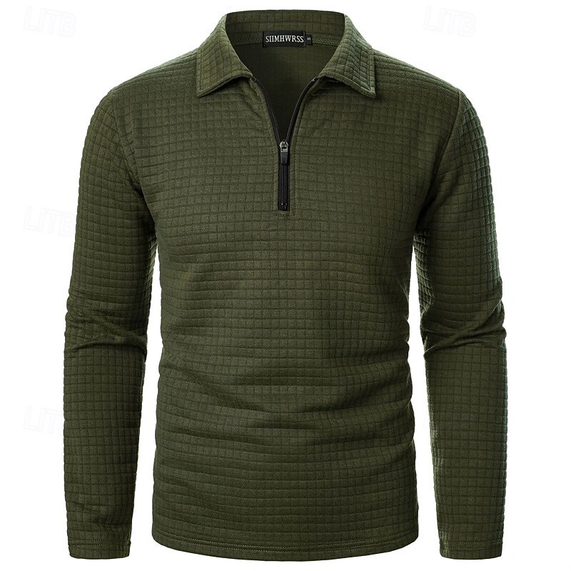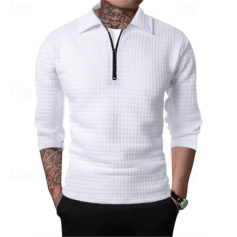 Men's Waffle Polo Shirts Quarter Zip Polo Daily Holiday Quarter Zip Long Sleeve Fashion Modern Plain Spring Autumn / Fall Regular Fit Black White Wine Navy Blue Khaki Army Green Waffle Polo Shirts 24