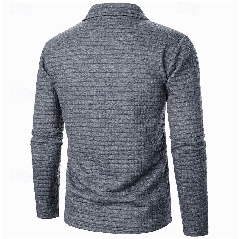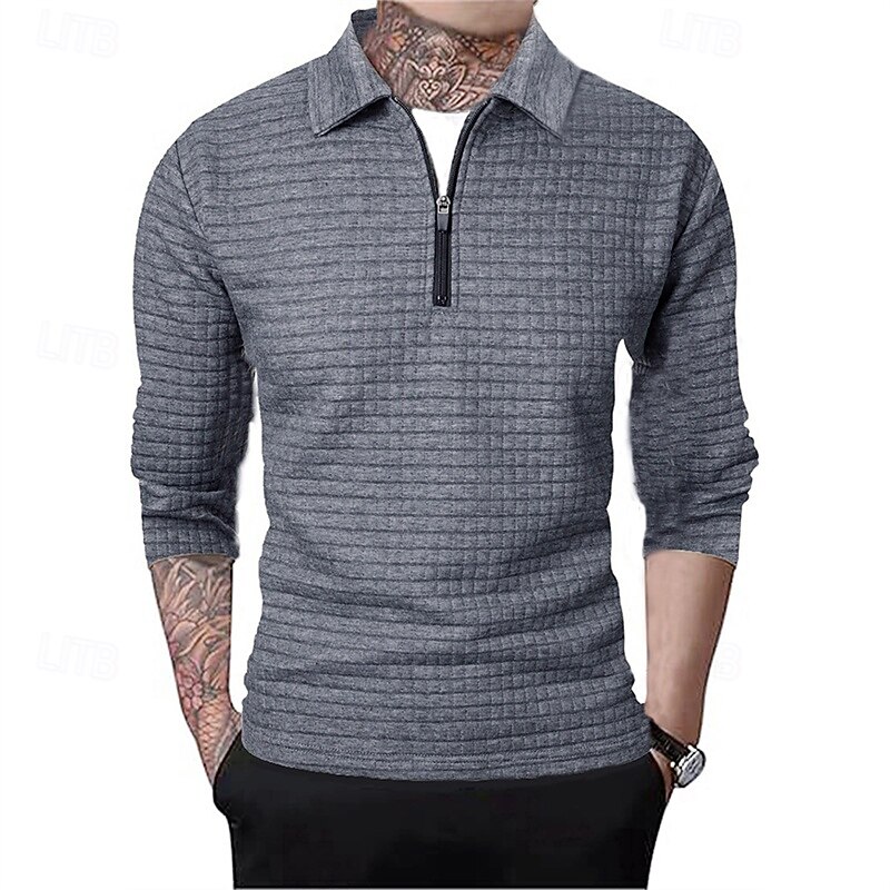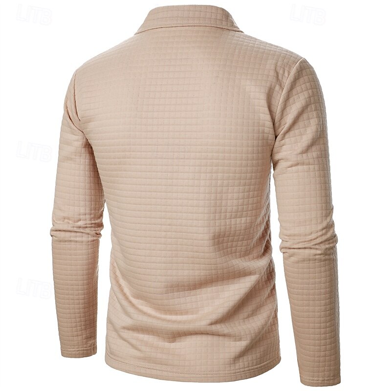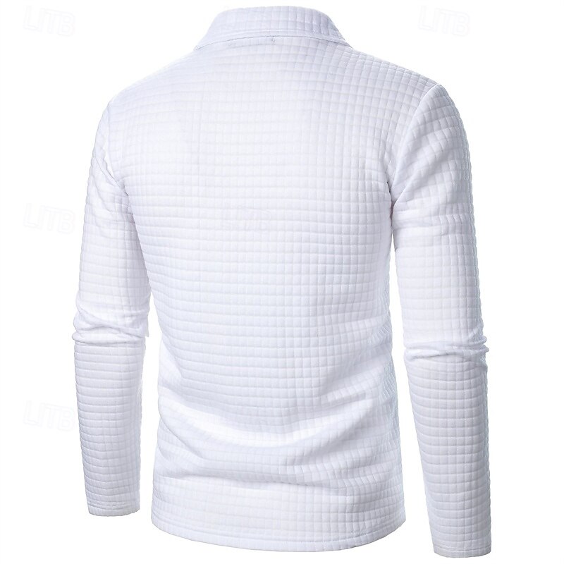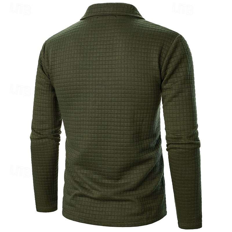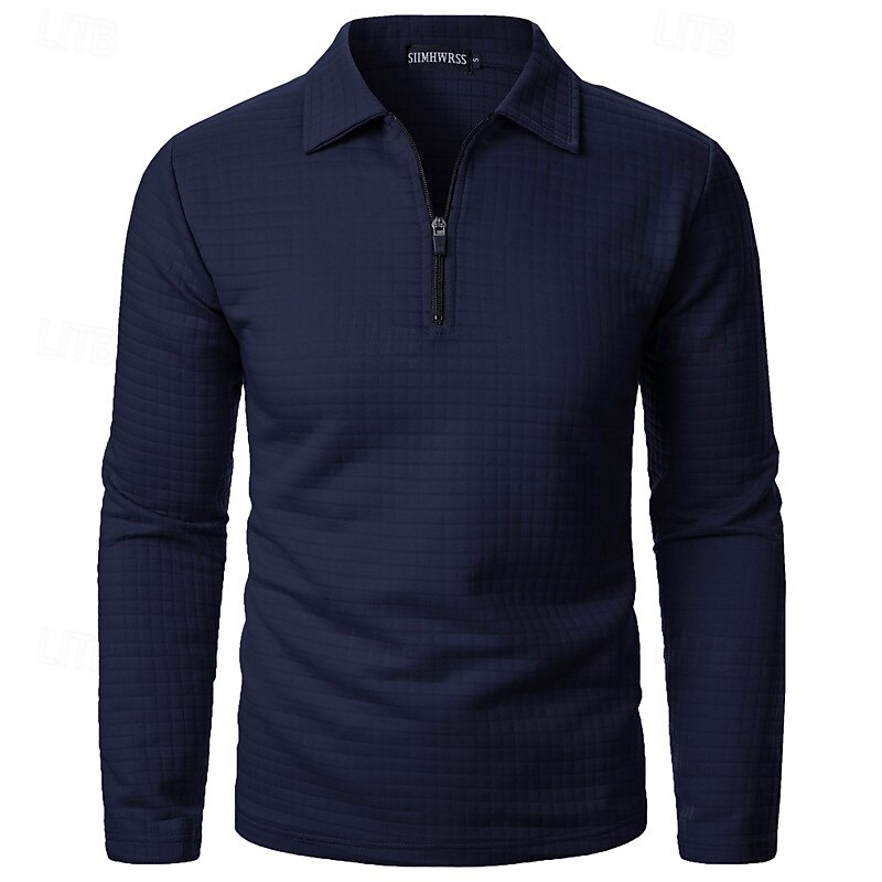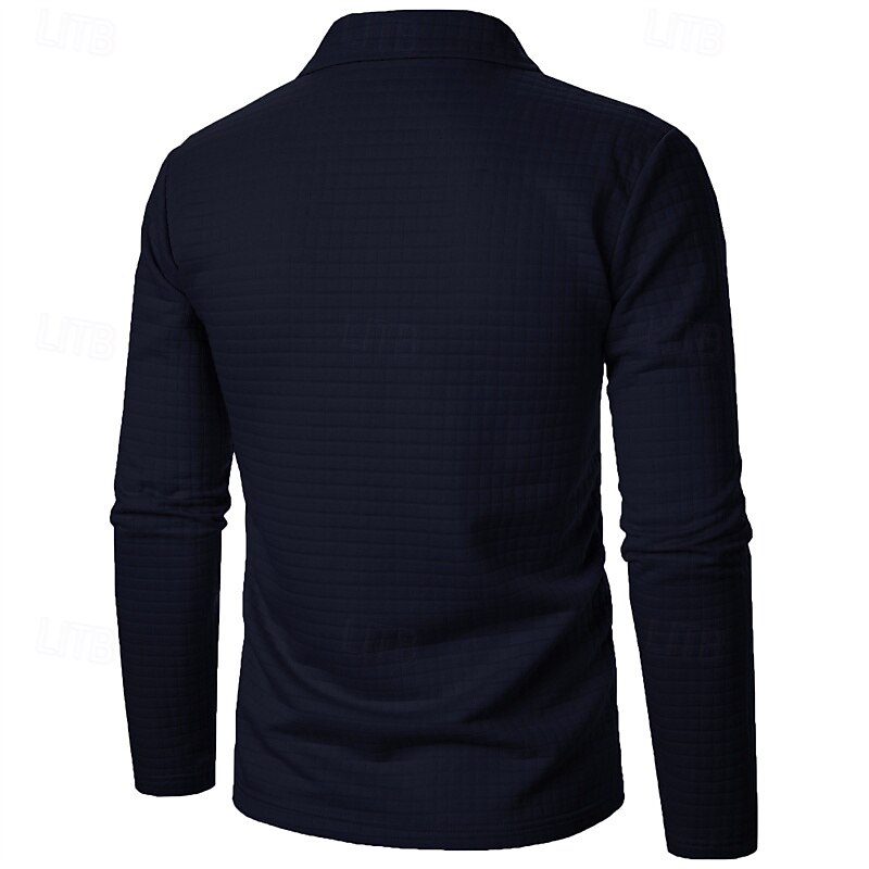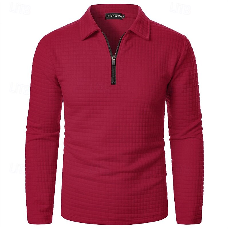 More information about Men's Waffle Polo Shirts Quarter Zip Polo Daily Holiday Quarter Zip Long Sleeve Fashion Modern Plain Spring Autumn / Fall Regular Fit Black White Wine Navy Blue Khaki Army Green Waffle Polo Shirts