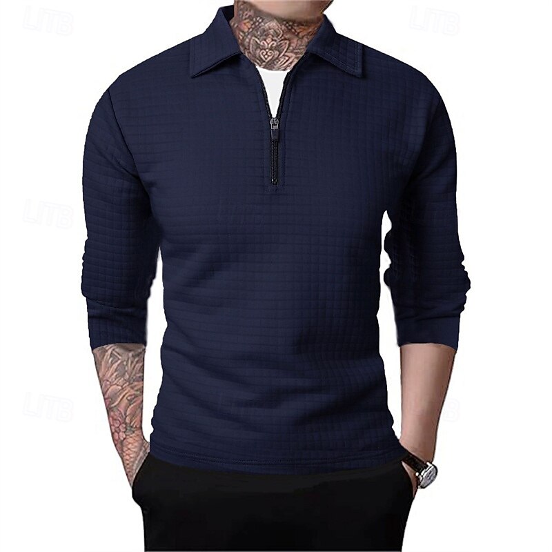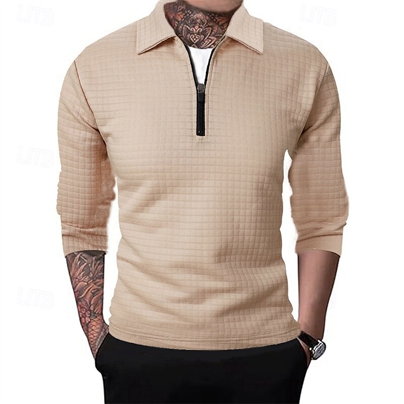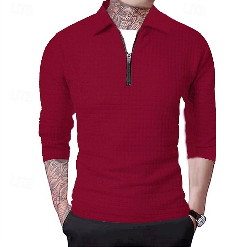 Men's Waffle Polo Shirts Quarter Zip Polo Daily Holiday Quarter Zip Long Sleeve Fashion Modern Plain Spring Autumn / Fall Regular Fit Black White Wine Navy Blue Khaki Army Green Waffle Polo Shirts 25