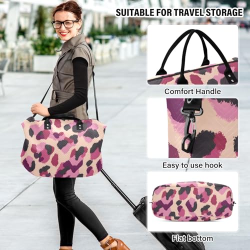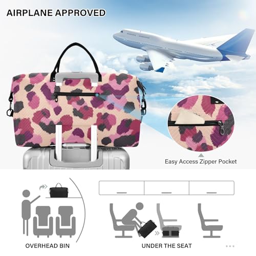 Large Travel Duffel Bag Sports Tote Gym Bag Overnight Weekender Bags Cute Leopard Carry On Luggage with Toiletry Bags 7