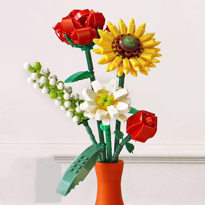 Women's Day Gifts Building Block Flower White Chrysanthemum Desktop DecorationDecorative Flower Plastic Building Blocks Flower Creative Puzzle Toy Festival Gift Mother's Day Gifts for MoM 11