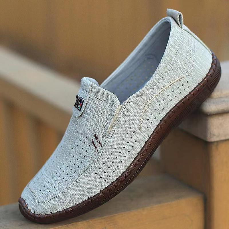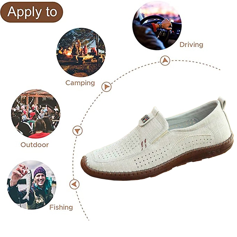 Highlights [Fabric] : Crafted with a lightweight and breathable woven fabric, these men's slip-on loafers ensure excellent ventilation, perfect for keeping your feet cool during warmer months. The upper's perforated design enhances air circulation, making these shoes ideal for summer wear. [Fit] : These loafers feature a cushy slip-on design, with a round toe shape and cushioned sole that provide flexibility and ease of movement, suitable for daily casual outings. [Design Highlights] : The shoes boast a sleek perforated pattern with subtle stitching details and an embroidered accent that adds a touch of sophistication. The convenient pull tab at the back allows for easy wear, while the durable TPR outsole provides reliable grip and traction. [Occasions] : Ideal for spring and summer, these loafers are perfect for casual daily activities, whether you're heading out for a walk, spending time outdoors, or attending relaxed gatherings. Their versatile style complements a range of outfits and occasions. [Size Range] : Available in sizes 39 to 44, these loafers are designed to accommodate various foot sizes, offering a comfortable fit for different wearers.