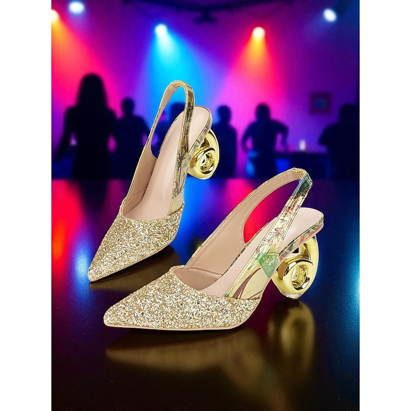 Highlights - Sparkling glitter upper material adds a touch of glamour - Synthetic leather lining for durability and comfort - Elegant pointed toe shape for a sleek look - Rubber outsole for a sturdy grip