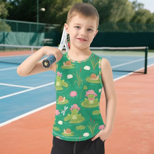 J JOYSAY Spring Frog Flower Green Boys Tank Top Sleeveless Muscle Shirts Quick Dry Sport Workout Active Kids T-Shirts 3-15T 3