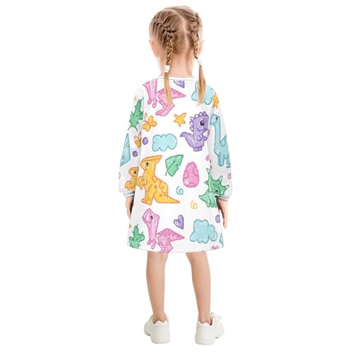 Crayon Dinosaur Girls Dresses Long Sleeve Sweatshirt Dress for Girls Winter Toddler Casual A Line Dresses Size 2-8T 4