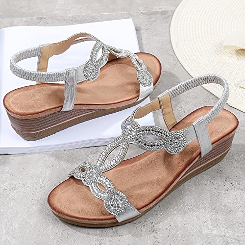 Meeshine Women's Wedge Sandals Summer Comfortable Casual Bohemian Beach Rhinestone Platform Shoes 6